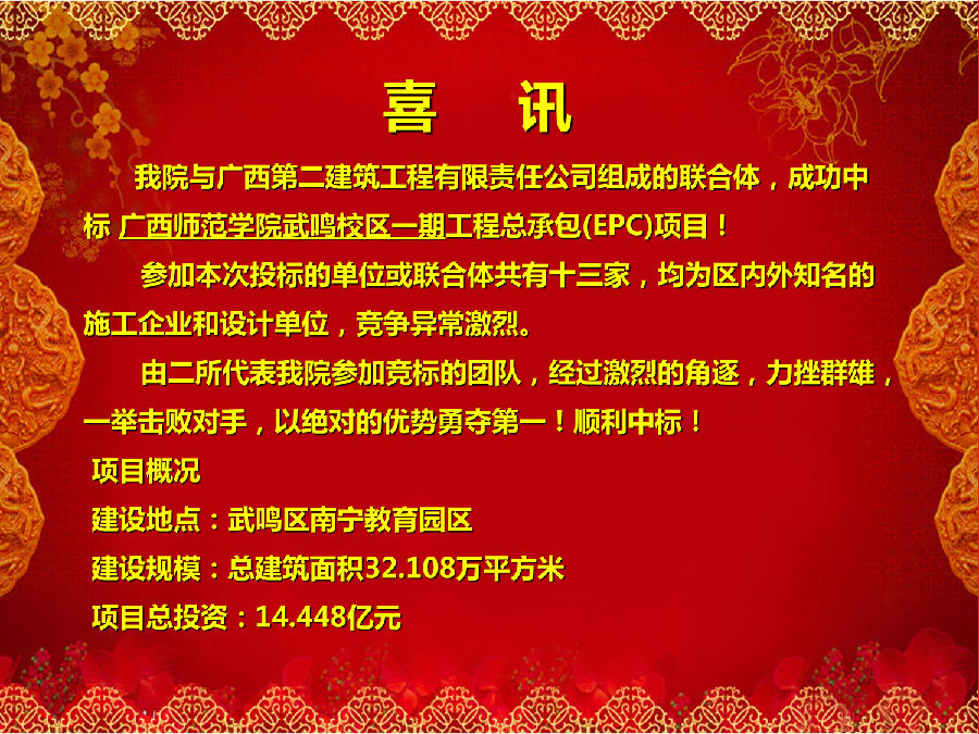 我院中標廣西師范學院武鳴校區(qū)一期工程總承包(EPC)項目
