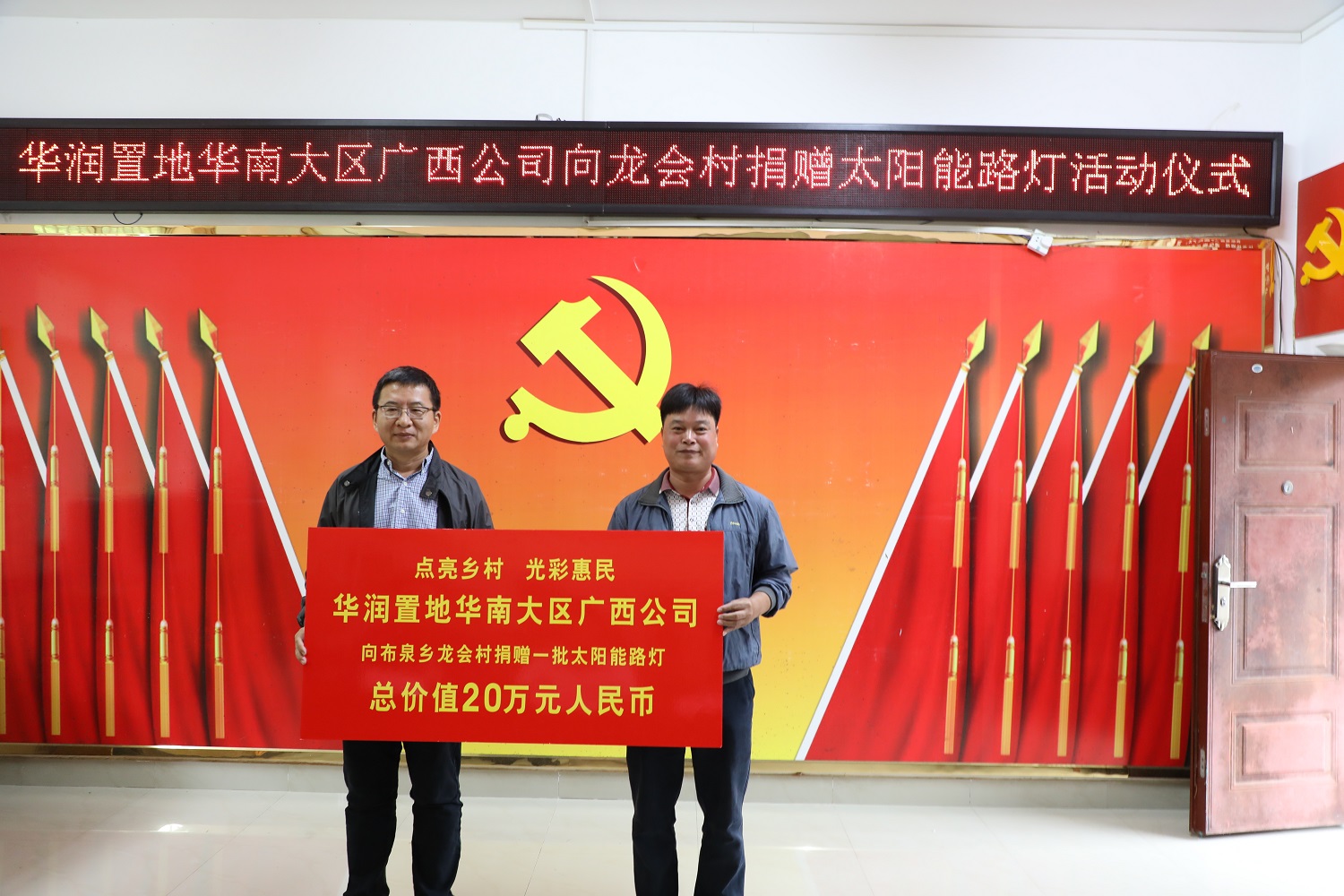 10月14日,南寧市自然資源局攜愛心企業(yè)華潤置地華南大區(qū)廣西公司到我院結(jié)對幫扶貧困村布泉鄉(xiāng)龍會村開展扶貧捐贈活動,向龍會村捐贈一批價值20萬元的太陽能路燈,助力鄉(xiāng)村振興。