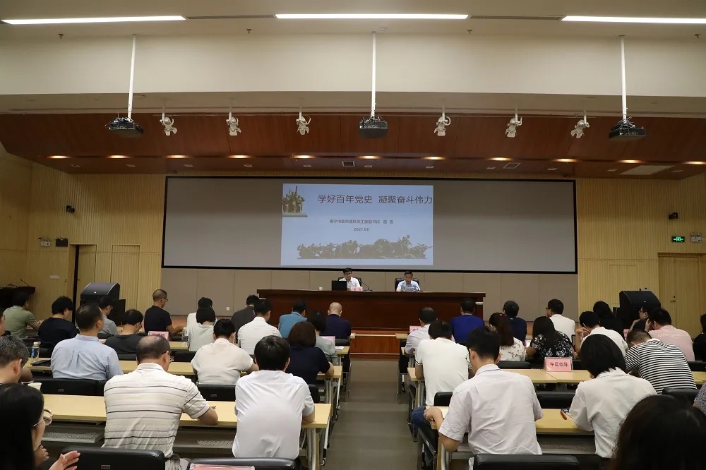 為幫助公司黨員干部更好地理解和開展黨史學(xué)習(xí)教育,6月24日,公司黨委邀請了南寧市委市直機關(guān)工委副書記藍迅為公司黨員干部上了一堂生動的黨史學(xué)習(xí)教育專題黨課,公司黨委書記韋文學(xué)主持會議,公司全體黨員和中層以上領(lǐng)導(dǎo)干部近160余人現(xiàn)場聆聽了專題黨課。