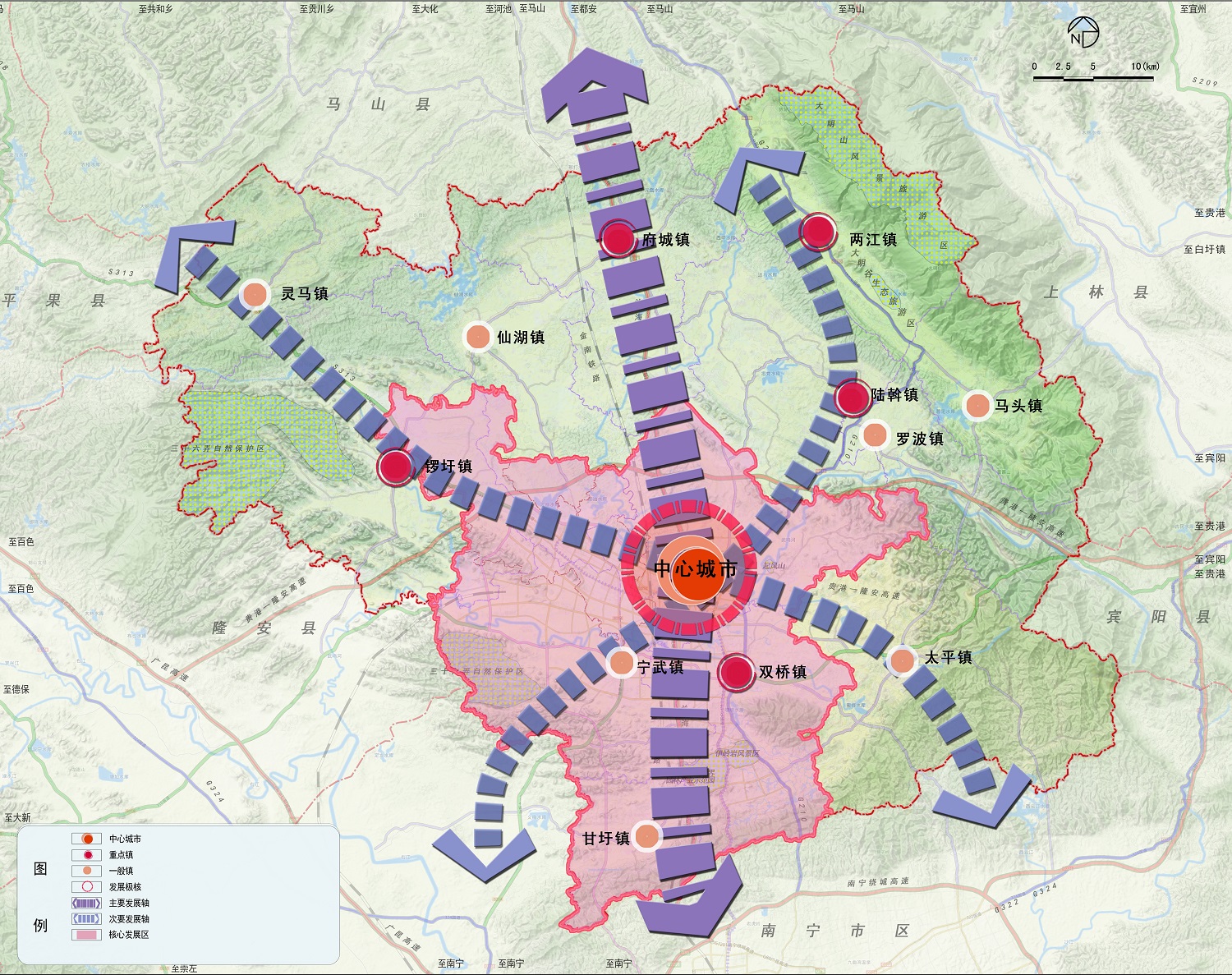 規(guī)劃概況:以科學發(fā)展觀為指導,深入推 進新型城鎮(zhèn)化,順應武鳴縣經濟發(fā)展新常 態(tài),強化創(chuàng)新驅動,推動轉型發(fā)展,面向 東盟開發(fā)開放,將武鳴縣建設成為環(huán)境生 態(tài)宜居、經濟多元高效、城鄉(xiāng)融合共進、 壯鄉(xiāng)特色鮮明的中國西部強縣,打造“山 水大武鳴,魅力新壯都”。