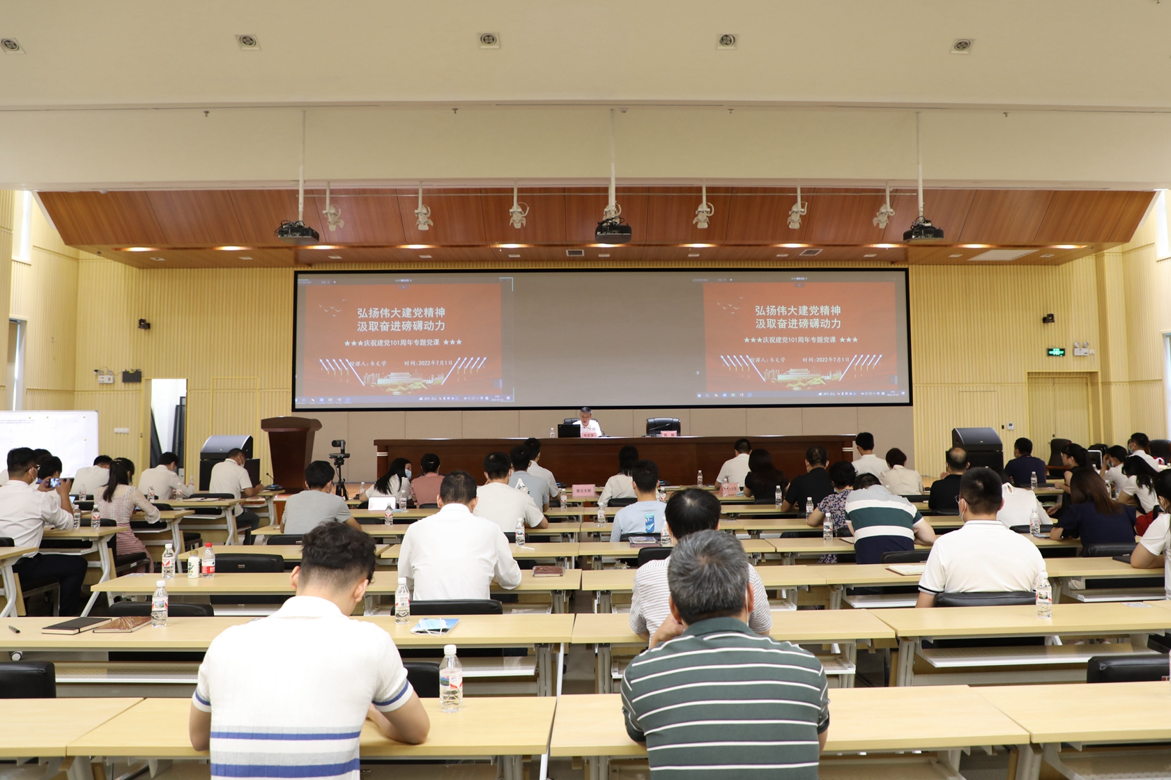 為慶祝中國共產(chǎn)黨成立101周年,7月1日上午,南寧市建筑規(guī)劃設(shè)計集團黨委以“奮進新征程,喜迎二十大”為主題,開展了一系列精彩的慶“七一”主題黨日活動。集團黨委書記、董事長韋文學(xué)出席并為全體黨員上黨課,集團黨委專職副書記、職工董事、工會主席趙鋼主持活動,全體黨委委員和集團全體黨員、發(fā)展對象、入黨積極分子分別在南樓主會場和北樓分會場參加活動。
