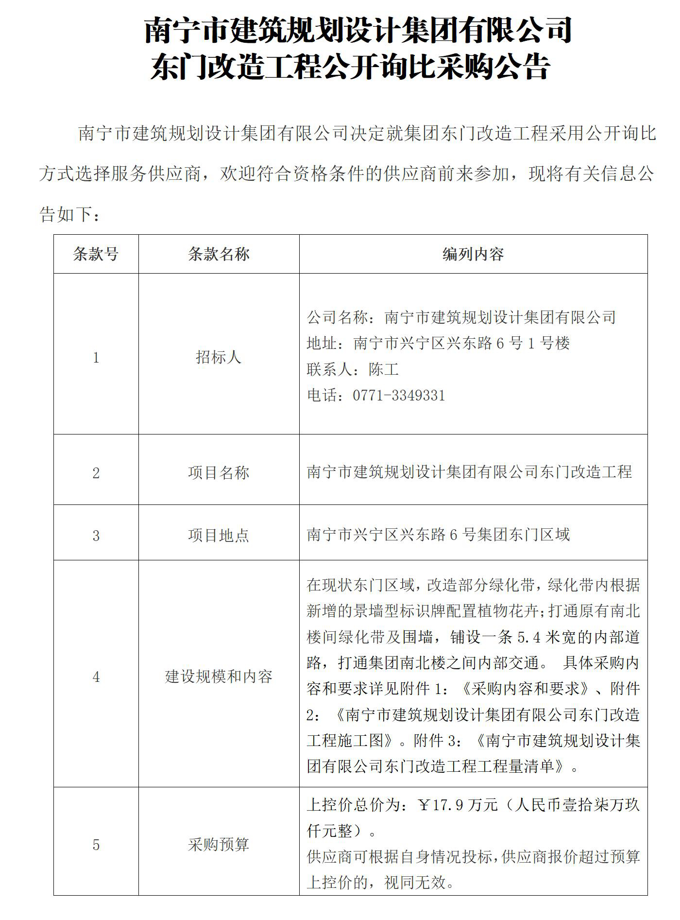 附件3:南寧市建筑規(guī)劃設(shè)計集團(tuán)有限公司東門改造工程招標(biāo)工程量清單